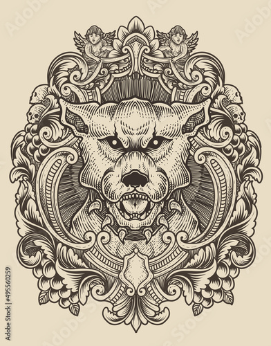 © Bayu, Obraz premium illustration vintage dog with engraving style