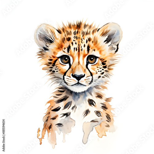 © Linggakun, Obraz premium illustration watercolor baby cheetah white background