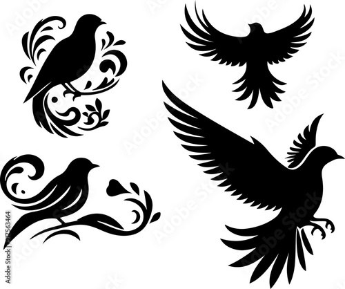 © Malindu, Fototapeta premium illustration with birds collection isolated on white background