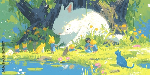 © Hamsyfr, Fototapeta premium illustration with children's drawing style for kid and animal cute
