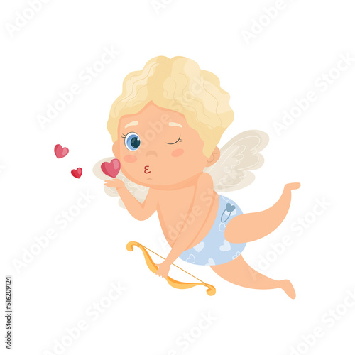 Obraz premium Illustration with cute cartoon cupid. St. Valentine's Day.