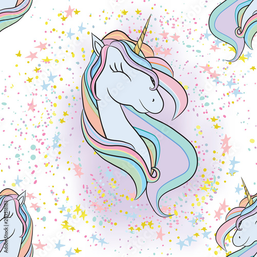 Obraz premium Illustration with cute mystic unicorn animal