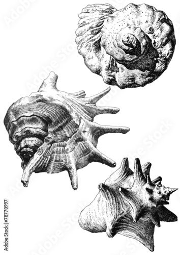 © redneks, Fototapeta premium illustration with different realistic seashells