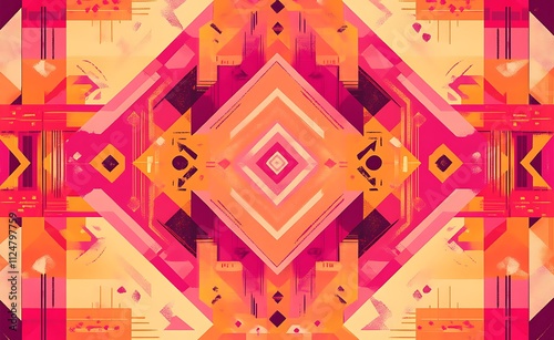 © Tanish, Obraz premium illustration with pink and orange geometric patterns