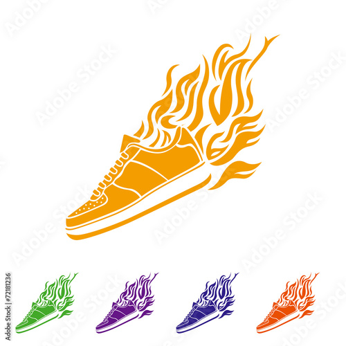 © 7razer, Obraz premium illustration with silhouette of running shoe icon background
