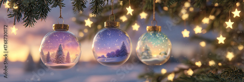 © studiobelir, Fototapeta premium illustration with three Christmas balls