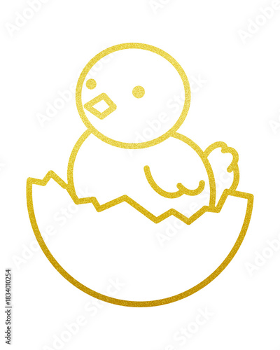 Obraz premium illustration: young olden chick sitting in broken easter egg shell isolated...