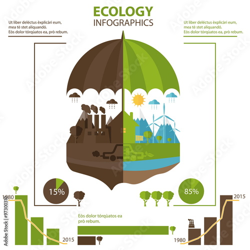 © UVAconcept, Naklejka premium Illustrations concept of umbrella and earth with icons of ecolog