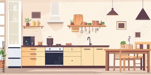 © Thanaporn, Fototapeta premium Illustrations of natural and straightforward scenes featuring everyday home cooking.