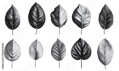 © Sunun, Obraz premium illustrations of various trees, leaves, grasses, and botanical elements on white background.