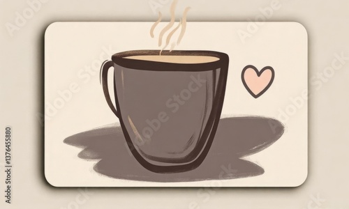Obraz premium Illustrative Coffee Cup with Heart Detail and Steam