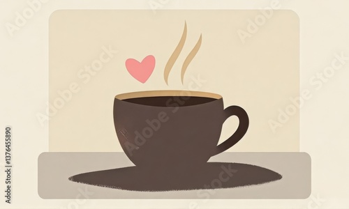 Obraz premium Illustrative Coffee Cup with Heart Detail and Steam