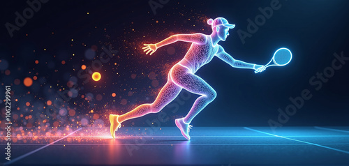 Naklejka premium illustrative depiction of a tennis player made of bright graphic lines,...