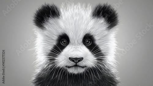Naklejka premium Illustrative Portrait of a Panda with Striking Black and White Features in a...