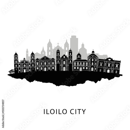 Fototapeta premium Iloilo City Skyline Vector with Philippines.