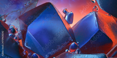 Naklejka premium Ilustracja abstrakcyjna przedstawiająca trójwymiarowe figury geometryczne.