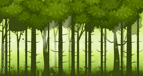 Obraz premium Ilustracja kreskówka lasu tła. Jasne lasy leśne, silhouttes, drzewa z...