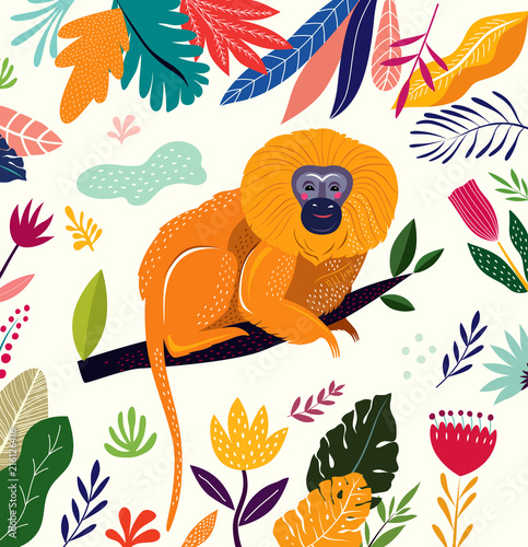 © moleskostudio, Naklejka premium Ilustracja kreskówka wektor z małą małpką na gałęzi