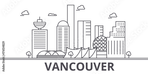 Obraz premium Ilustracja panoramę linii architektury Vancouver. Liniowy wektor gród ze...