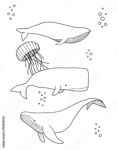 © RosaLinde_Illus, Naklejka premium ilustracja wieloryba
