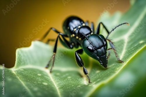 Fototapeta premium image, ant resting on a green leaf ,generative ai