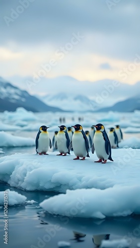 Obraz premium image d'une colonie de manchots dans un désert glacé