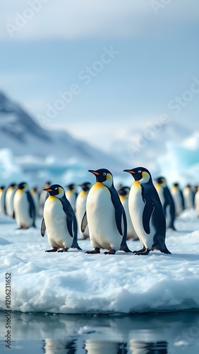 Obraz premium image d'une colonie de manchots dans un désert glacé