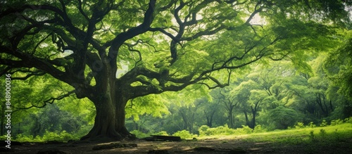 © Ilgun, Obraz premium Image of a camphor tree in a forest highlighting its role in ecology with space for including text. Copy space image. Place for adding text and design