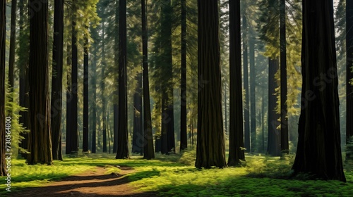 © kept, Obraz premium Image of a dense forest filled with tall trees.