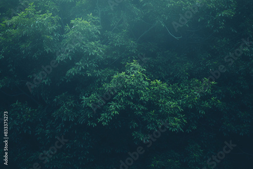 Naklejka premium image of a misty forest with thick, lush greenery creating a tranquil scene