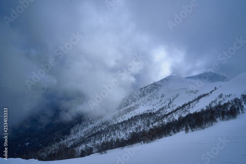 © PhotoBetulo, Obraz premium Image of a mountain covered with a snow cloud.