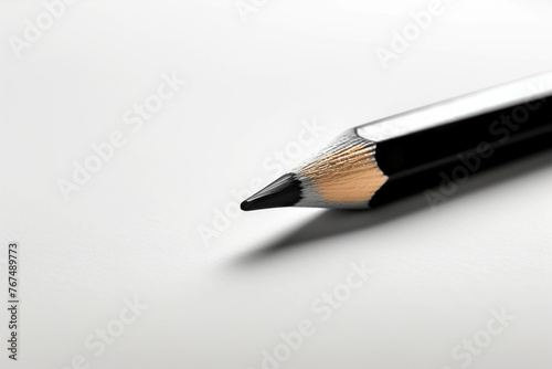 Fototapeta premium Image of a pencil resting on a white sheet of paper.