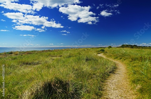 © Stephan Hickisch/Wirestock Creators, Obraz premium Image of a road surrounded with grass in both sides and a beautiful sky above