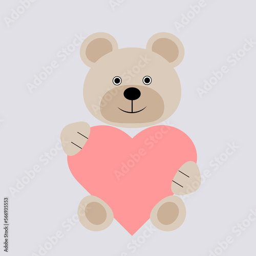 © Victoria, Obraz premium Image of a teddy bear with a huge heart, which he holds with his paws