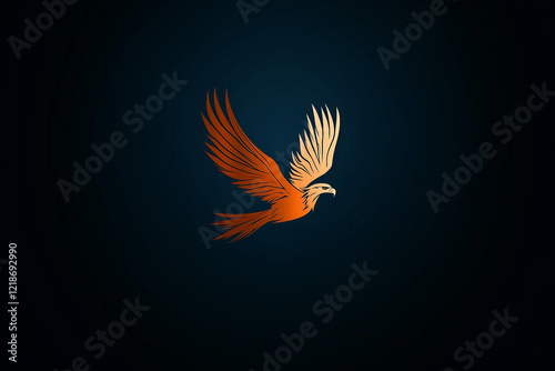 © eliyashevskiy, Obraz premium Image of a Vibrant Orange Eagle Soaring Against a Dark Blue Background Showcasing Grace and Strength
