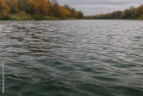 © CreativeBro, Fototapeta premium Image of a water body with a river under overcast autumn skies