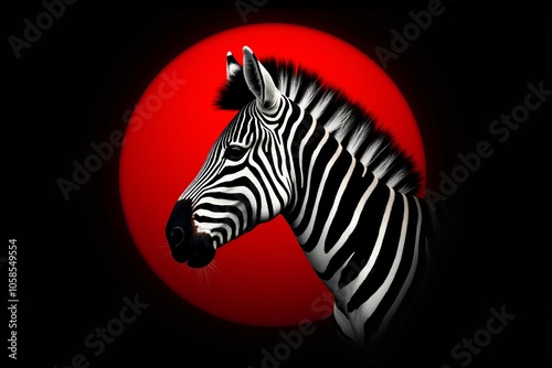 © Alexsandr, Fototapeta premium Image of a zebra against a red sun. Black background
