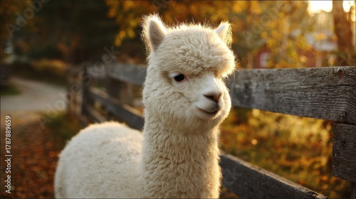 Naklejka premium Image of an adorable fuzzy alpaca on the farm