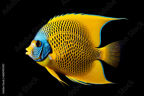 © yod67, Naklejka premium Image of an angelfish on black background. Fishs, Underwater Animals. Illustration, Generative AI.