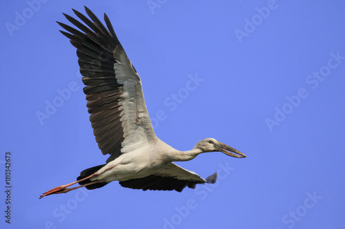 © yod67, Fototapeta premium Image of an Asian openbill stork(Anastomus oscitans) flying in the sky. Bird, Wild Animals.