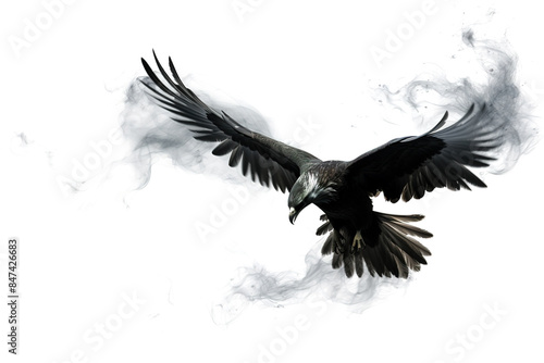 © yod67, Naklejka premium Image of an eagle is flying and black smoke before white background. Birds. Wildlife Animals.