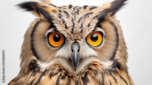 Obraz premium Image of an owl's face on a white background.