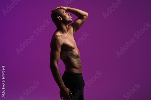 Naklejka premium Image of athletic half-naked african american man posing on camera