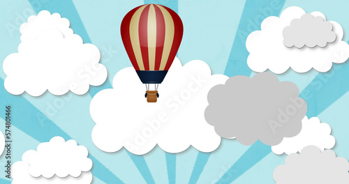 Obraz premium Image of balloon and clouds icons on blue striped background