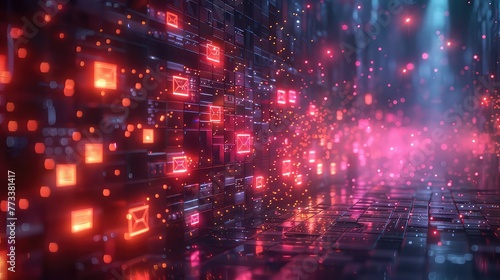 © Rabia, Fototapeta premium Image of Blue Geometric Shapes With Glowing Connections