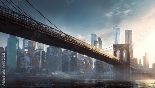 Obraz premium Image of Brooklyn Bridge spanning East River with Manhattan downtown skyline in the background. Crisp, clean look on white background. Concept of urban architecture. High quality