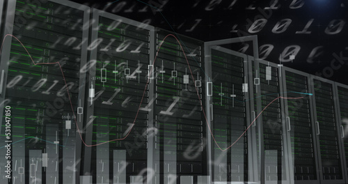 Obraz premium Image of data processing and diagram over server room