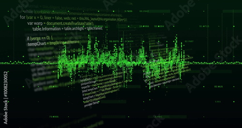 © vectorfusionart, Obraz premium Image of data processing and diagrams over black background