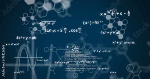 © vectorfusionart, Obraz premium Image of data processing and mathematical equations on black background