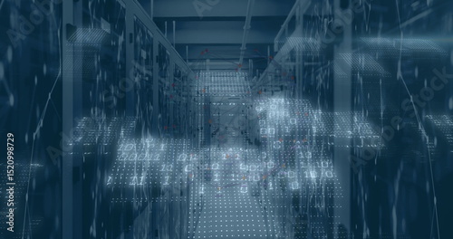 Obraz premium Image of data processing and network of connections over server room